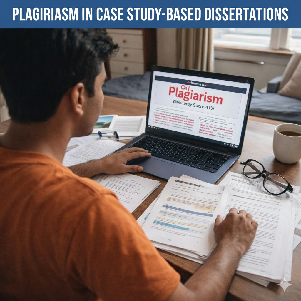 Case study-based dissertations are common in fields such as management, education, law, and social sciences, especially in Indian private universities. They allow scholars to examine real-world situations in depth and apply theoretical concepts to practical problems. However, the nature of case studies makes them highly vulnerable to plagiarism. Since a large portion of the data, examples, and even wording may come from existing reports, websites, or publications, it becomes easy for accidental or intentional similarity to occur. For PhD scholars, understanding how plagiarism manifests in case study-based work is essential to producing an original, ethical dissertation.